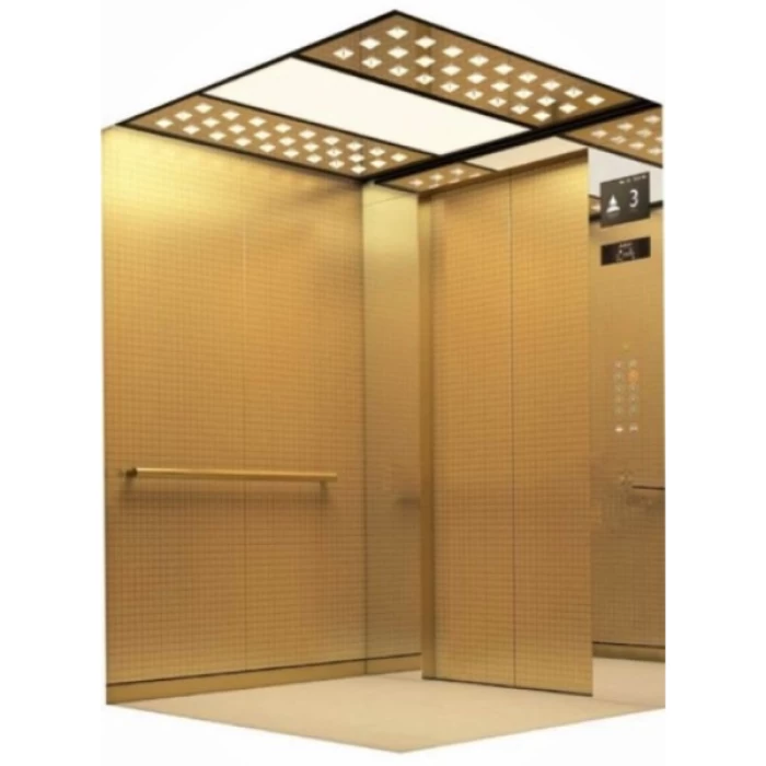 Cửa tầng & cabin: Mở tự động hai cánh, vật liệu Inox 304 gương sáng hoặc sọc nhuyễn cao cấp